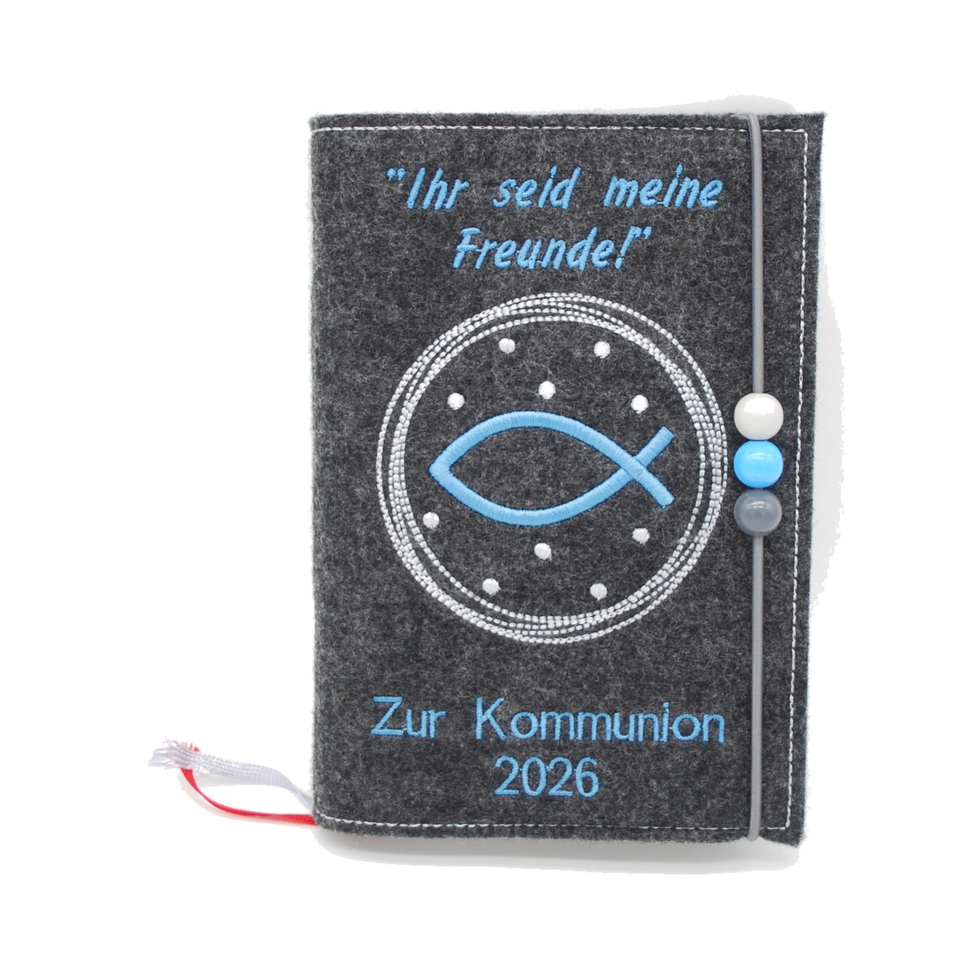 Durch die Kombination aus hochwertigem Filz, sorgfältiger Bestickung und persönlichem Namen entsteht ein Geschenk, das zum Anlass passt und zugleich lange Freude macht. So wird aus einer praktischen Hülle ein Erinnerungsstück, das die Kommunion auf besondere Weise begleitet.