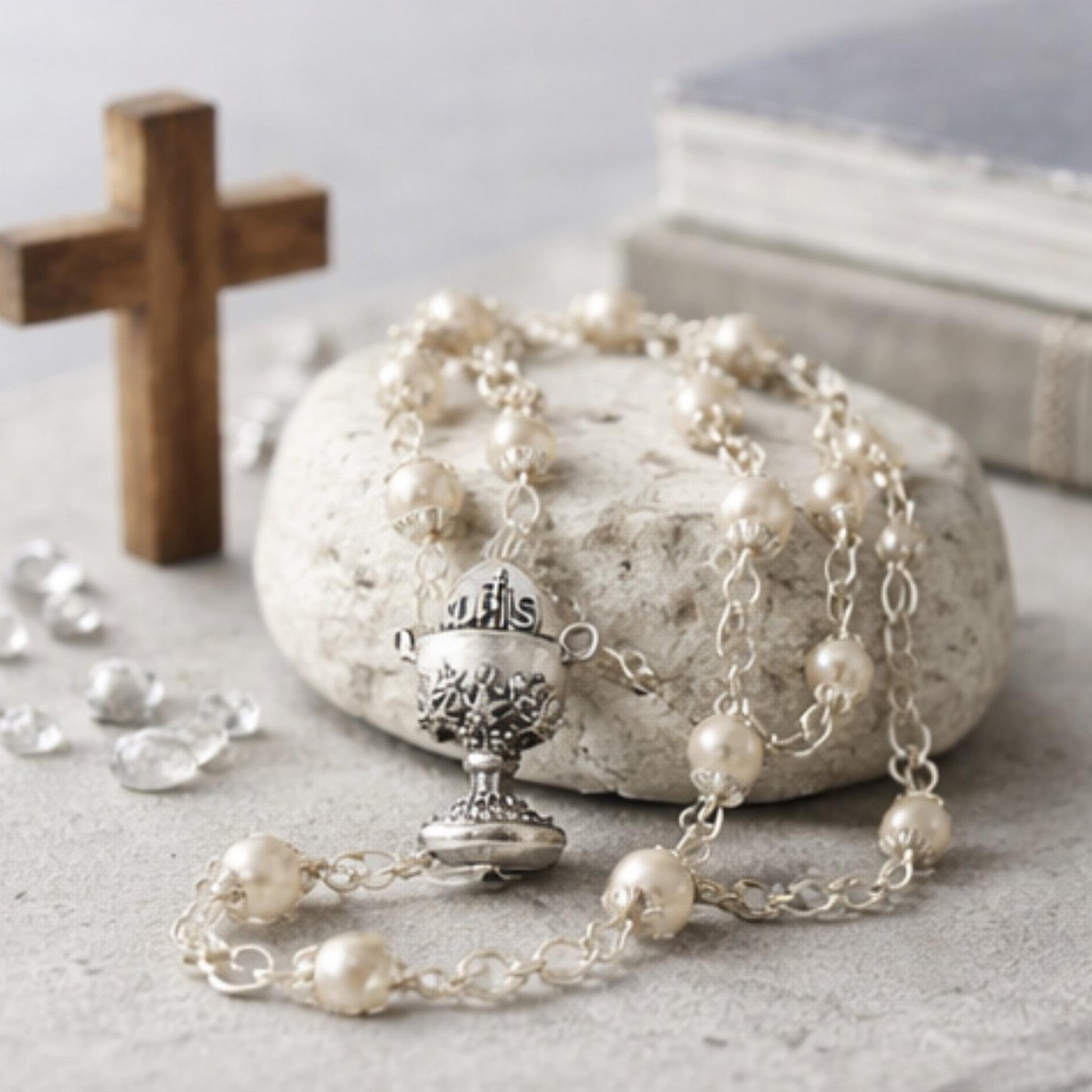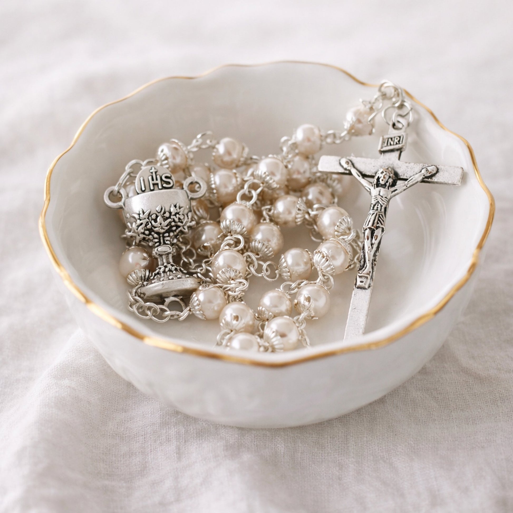 Rosenkranz zur Erstkommunion mit Perlen – klassisch & hochwertig